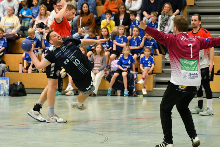 TSV Bonn rrh. – HSG am Hallo Essen 31:32 (15:16). Es war ein schmerzhaftes Finale für die Bonner – und trotzdem kein ungerechter Sieg der Essener, die fast immer eine Führung in der Hand hielten und dann in der Schlussphase auch das Glück auf ihrer Seite hatten. Beim Stande von 31:31 (55.) erzielte zunächst Simon Ciupinski das 32:31 (56.) für die Gäste, ehe Mathis Blum einen Siebenmeter nicht nutzen konnte – und der TSV dadurch die Chance auf den erneuten Ausgleich bescherte. Kurz darauf ging es allerdings Bonns Luca Bohrmann beim Strafwurf nicht besser, sodass Essen unverändert mit einer knappen Führung in die letzten anderthalb Minuten ging. Dort gab es dann nur noch ein Auszeiten-Duell (59./Essen, 60./Bonn), aber keine weiteren Tore mehr. TSV-Trainer Florian Benninghoff-Lühl war ebenso enttäuscht wie ehrlich: „Leider schaffen wir es zum zweiten Mal im Topspiel zu Hause nicht, uns für eine wirklich gute Leistung zu belohnen. Den Punkt hätten wir meiner Meinung nach verdient gehabt. Trotzdem ist es nicht unverdient, dass Essen die beiden Punkte mitnimmt.“ Ähnlich war es seiner Mannschaft, die er mit nun 14:20 Zählern selbst in der Abstiegszone angekommen sieht, bereits vor zwei Wochen beim 35:36 gegen den Spitzenreiter TSV Bayer Dormagen II (25:9) gegangen. Deutlich freundlicher sieht die Lage momentan beim Aufsteiger Essen aus (23:11), der bereits zum fünften Mal hintereinander gewann und nun als Dritter gemeinsam mit dem Zweiten TV Korschenbroich (ebenfalls 23:11) der erste Verfolger der Dormagener ist. „In den letzten fünf Minuten haben wir drei Pfostentreffer plus einen verworfenen Siebenmeter, wodurch es mit plus eins in die letzten zwei Minuten reingeht. Bonn verwirft in der Phase auch einen Siebenmeter, den Dean Christmann gut entschärft hat. Ich würde sagen, dass wir schon als verdienter Sieger vom Platz gehen, weil wir das ganze Spiel geführt haben – bis auf eine Führung von Bonn. Am Ende sind wir glücklich, dass wir gewonnen haben und uns weiter oben festsetzen konnten“, sagte der HSG-Vorsitzende Alexander Gerke, der ein Sonderlob für Keeper Dean Christmann und den achtfachen Torschützen Simon Ciupinski verteilte.
