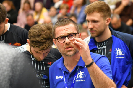 Dass der TVK einen ausgesprochen schwierigen Abend erleben würde, deutete sich früh an. Eine Führung konnten sich die Gäste nie erarbeiten und einen Gleichstand sahen sie lediglich vier Mal auf der Anzeigetafel – mit dem 0:0 beim Anpfiff, mit dem 1:1 (2.) durch Steffen Brinkhues kurz darauf, mit dem 4:4 (11.) von Max Zimmermann und dem 5:5 (13.) durch Max Hartz. Rheinhausens Viererserie zum 9:5 (17.) war anschließend ein erstes klares Zeichen für die Richtung in dieser Partie, in der Korschenbroich aber trotz aller Widrigkeiten nie aufgab und sich weder vom 8:13 (26.) noch vom 12:16 (33.) komplett aus der Bahn werfen ließ. Mit dem 17:18 (38.) waren die Gäste sogar wieder dran, doch in den folgenden fünf Minuten büßten sie endgültig alle Chancen ein: Beim Stande von 17:20 (39.) gab es kurz hintereinander Zeitstrafen gegen Brinkhues (40.) und Zimmermann (41.) sowie die Rote Karte (41./dritte Zeitstrafe) gegen Fritz Bitzel. Logisch: Rheinhausen nutzte die Gunst der Stunde mit drei Mann mehr auf der Platte und als Korschenbroich wieder seine Sollstärke erreicht hatte, führte der OSC mit 22:17 (42.). Hier war der Abend vorzeitig entschieden und auf der Zielgeraden legten die Hausherren vom 26:21 (54.) bis zum 30:21 (57.) trotzdem nach gegen längst geschlagene Korschenbroicher. „Das Ergebnis ist einen Ticken zu hoch“, fand Berlinger, „aber der Sieg absolut verdient für Rheinhausen.“ Bei Sascha Wistuba, der zusammen mit Nico Biermann ein Trainer-Duo beim OSC bildet, herrschte eine Mischung aus Staunen und Bodenhaftung: „Mit dem Sieg haben wir so nicht gerechnet. Der TVK hat sich nicht aufgegeben und beim 18:17 hätte das Spiel durchaus noch mal kippen können. Die dreifache Bestrafung für Korschenbroich nutzen wir aber konsequent aus und setzen uns entscheidend ab. Wir hatten ab dann für vieles die richtige Antwort. Mit einem überragenden Abwehr- und Torwartspiel legen wir den Grundstein für diesen wichtigen Sieg. Natürlich sind wir mächtig stolz auf das, was in den letzten Wochen hier gewachsen ist. Es ist toll, wie das Team auf und neben der Platte agiert. Und trotzdem wird es eine heiße Endphase.“